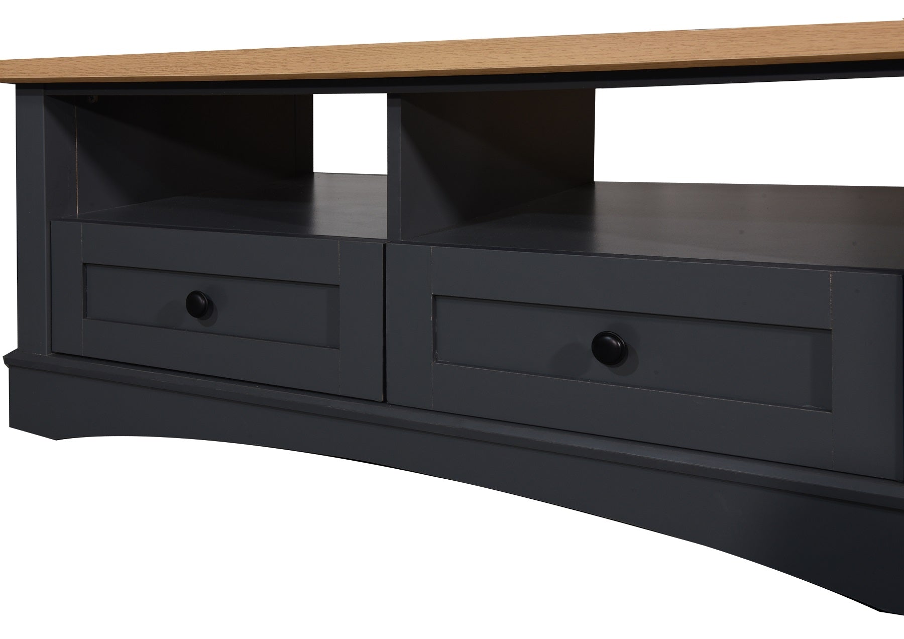Complete with a large table top area that gives you plenty of usable display space, as well as two drawers and an open space that is great for neatly storing magazines and books.