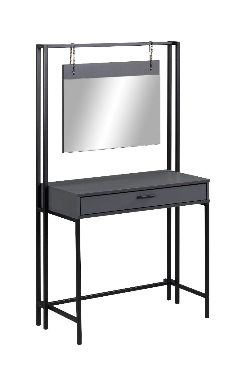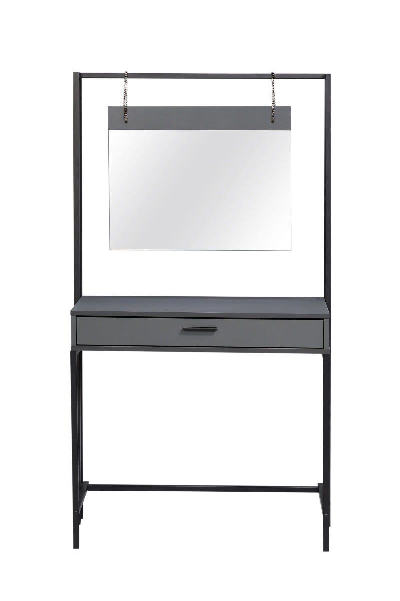 This beautifully designed Dressing Table comes complete with a dresser drawer and mirror that hangs from the top frame by rustic chains.