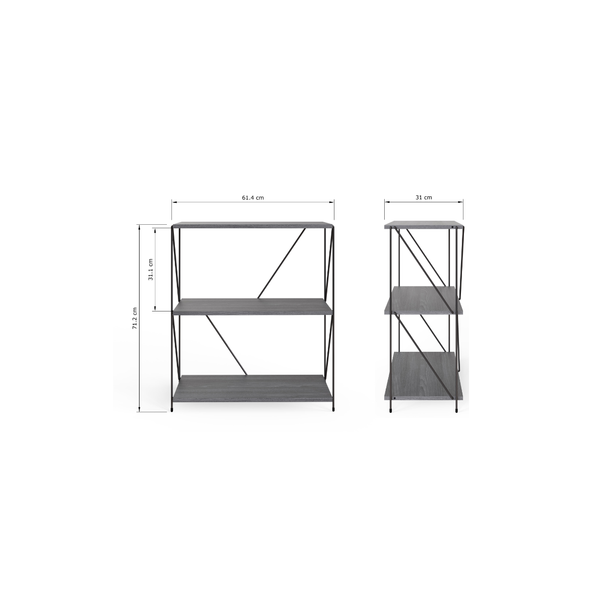 The Leylo 3 tier bookcase is a sharp and minimalist design option for any home or office. This durable yet sleek bookcase provides a perfect space saving solution for books and files. Offering a black metal frame coupled with Grey, wood effect shelving, ensures its an ideal match for all rooms and colour schemes. This item comes flat packed for easy self-assembly at home.